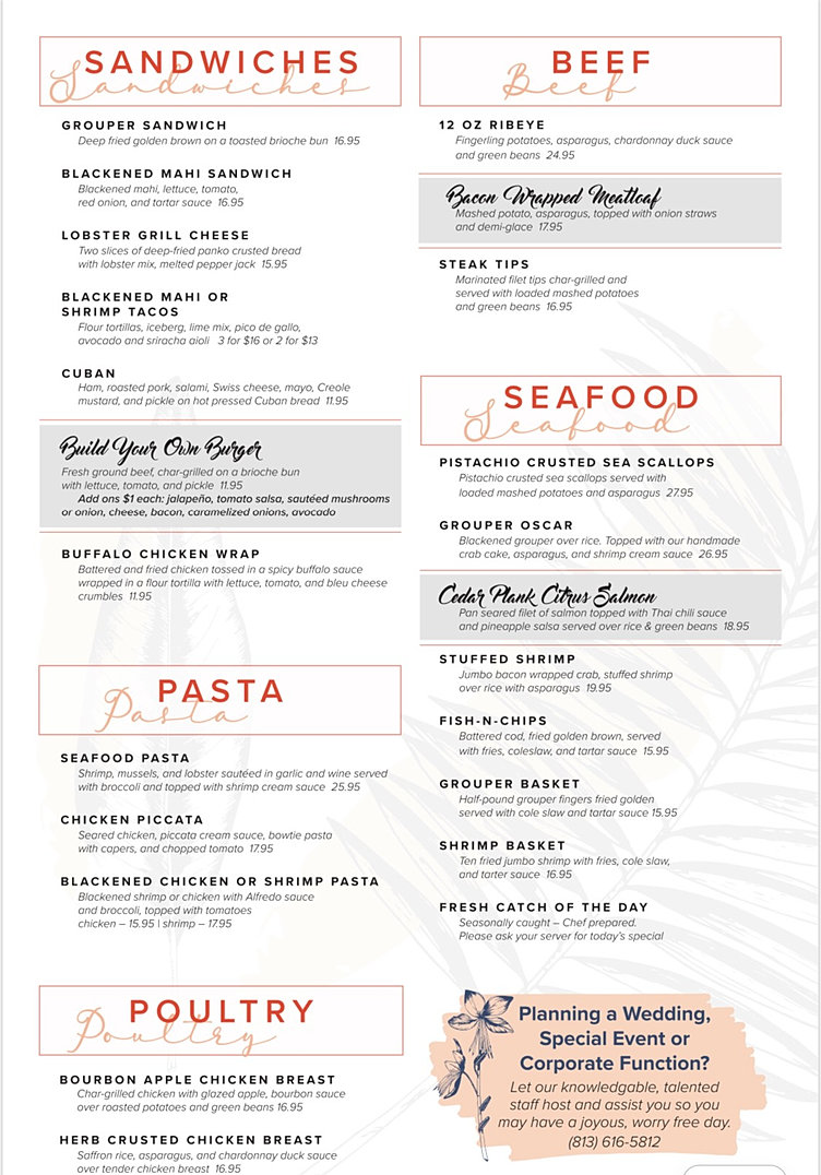 Waterfront Restaurant Sunset Grill at Little Harbor Ruskin, FL Menu